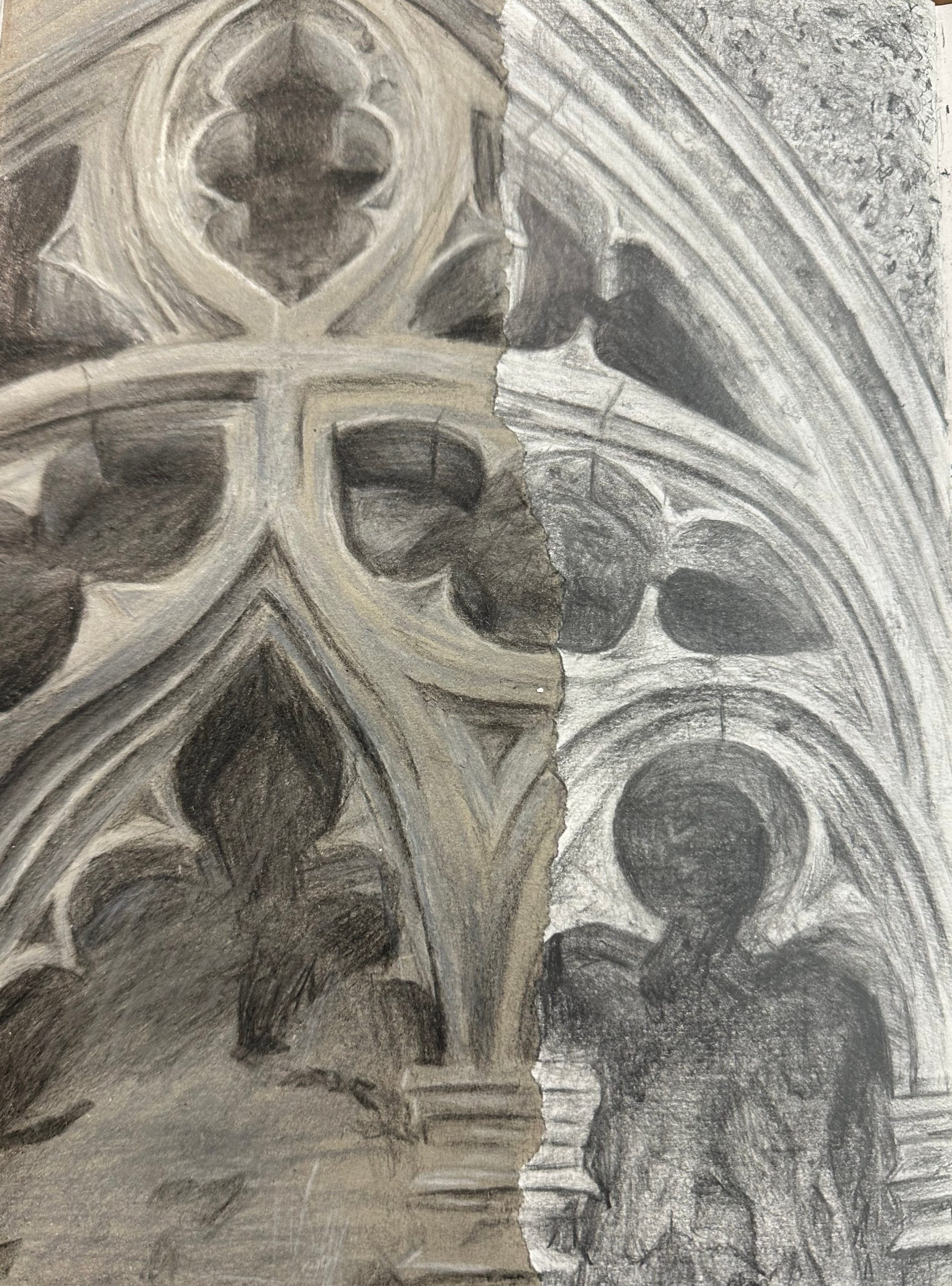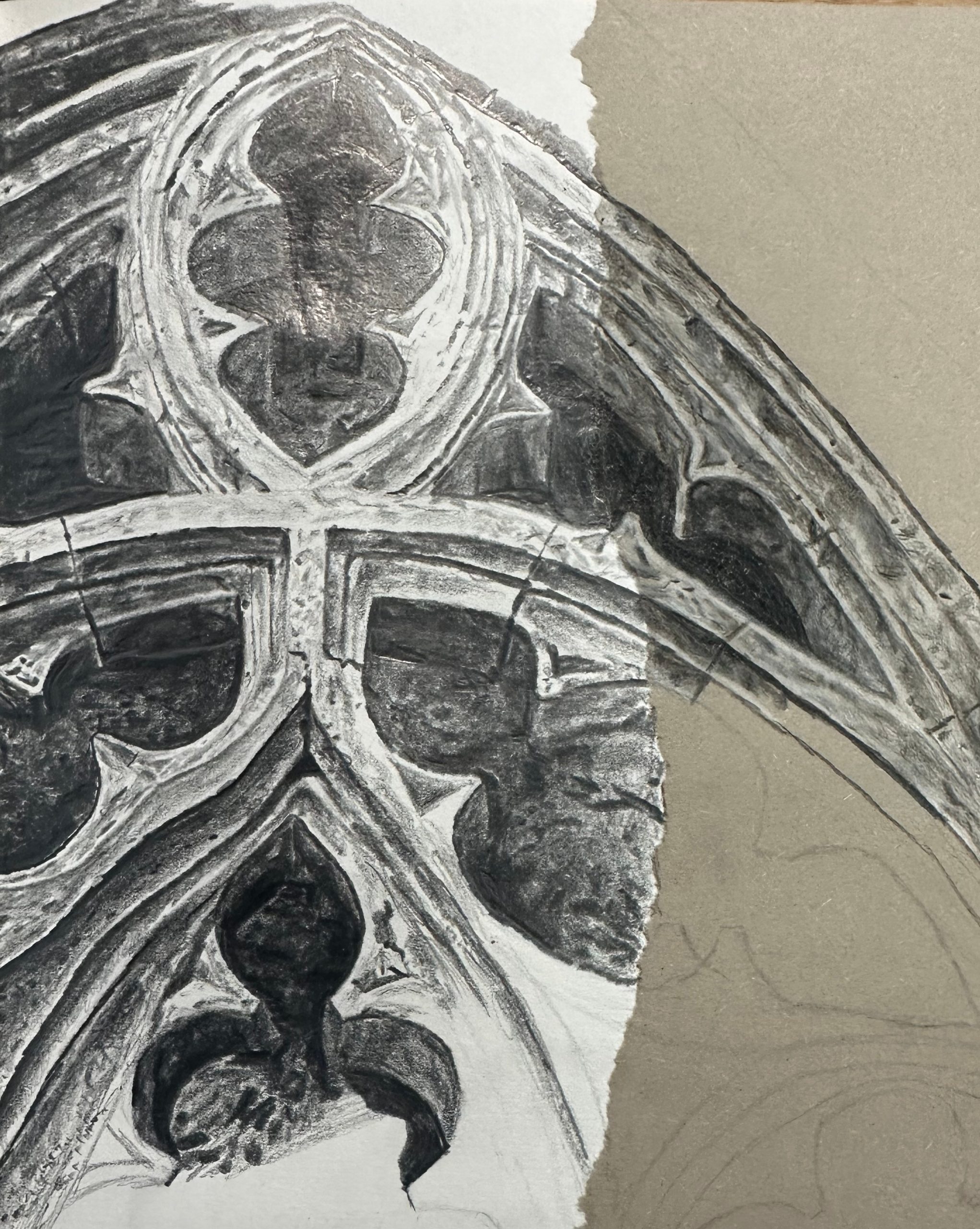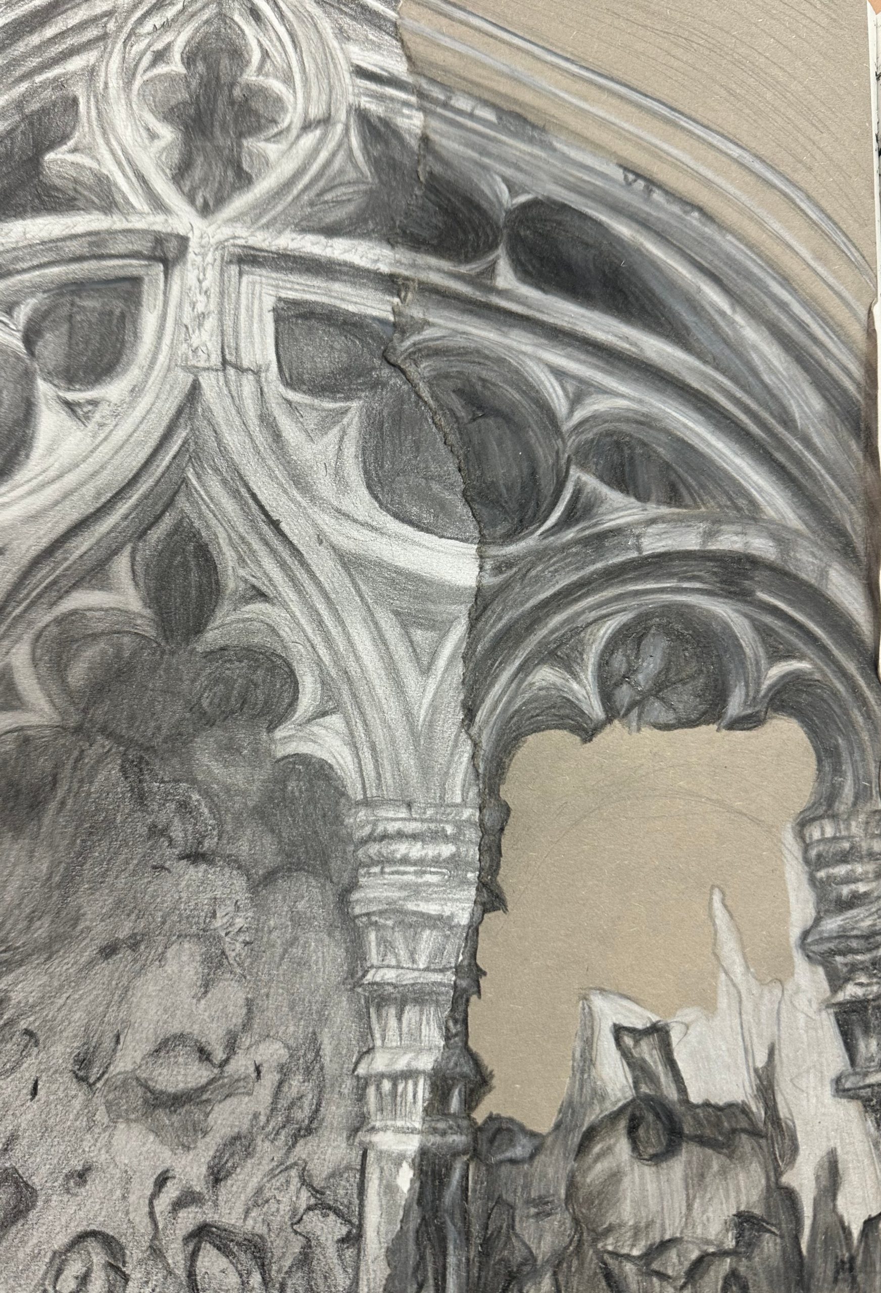 Graphite, black and white colour pencils, 30cm x 20cm