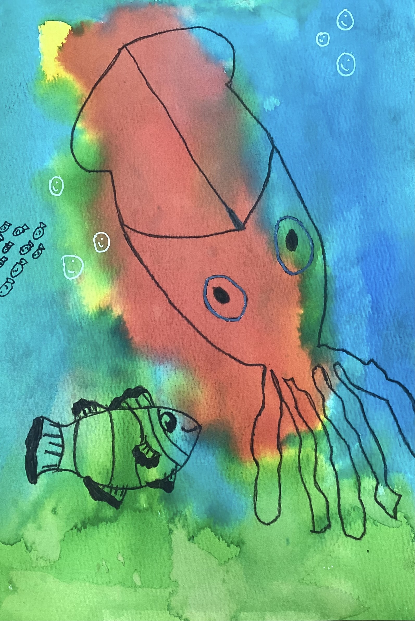 The Happy Fishes and a Squid