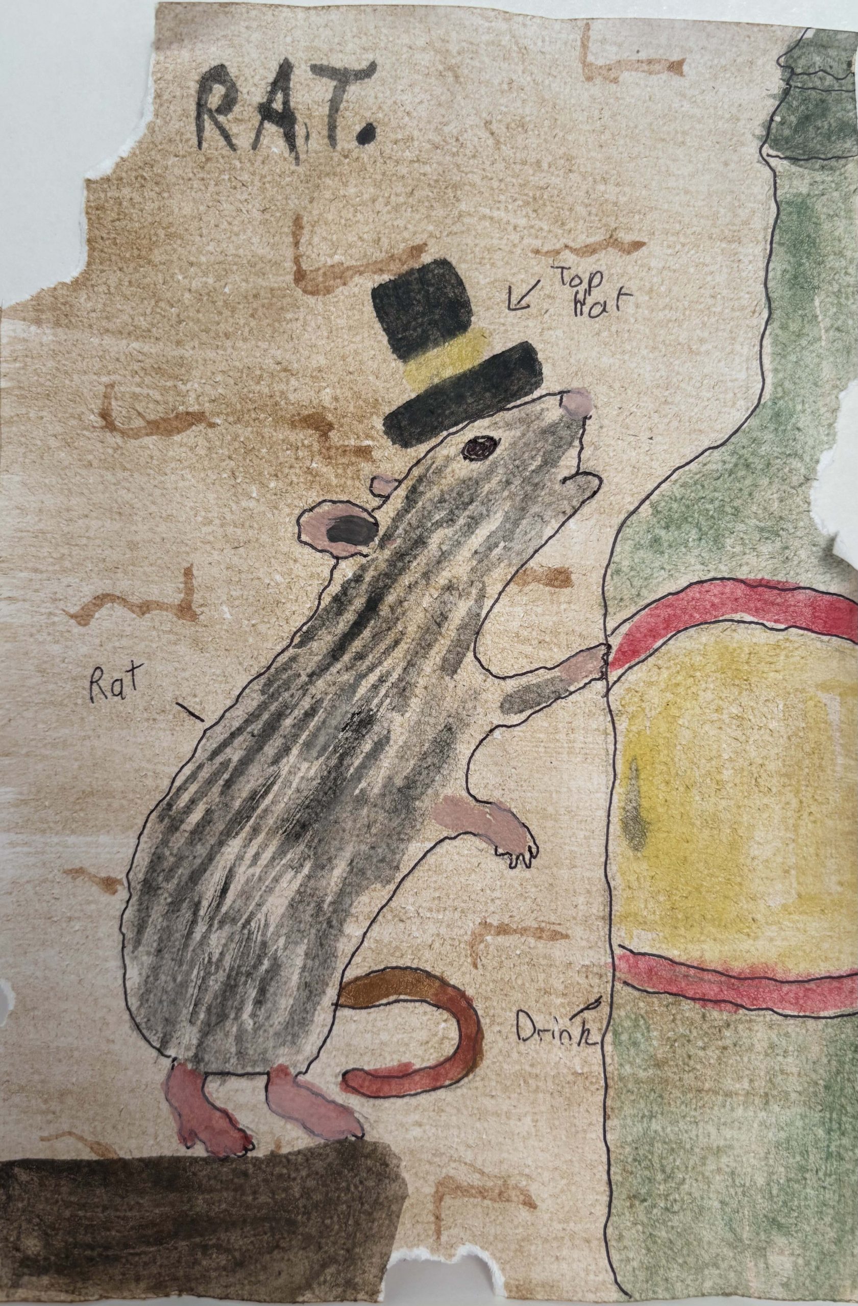 Found objects, marker pen and watercolour, 30cm x 21cm