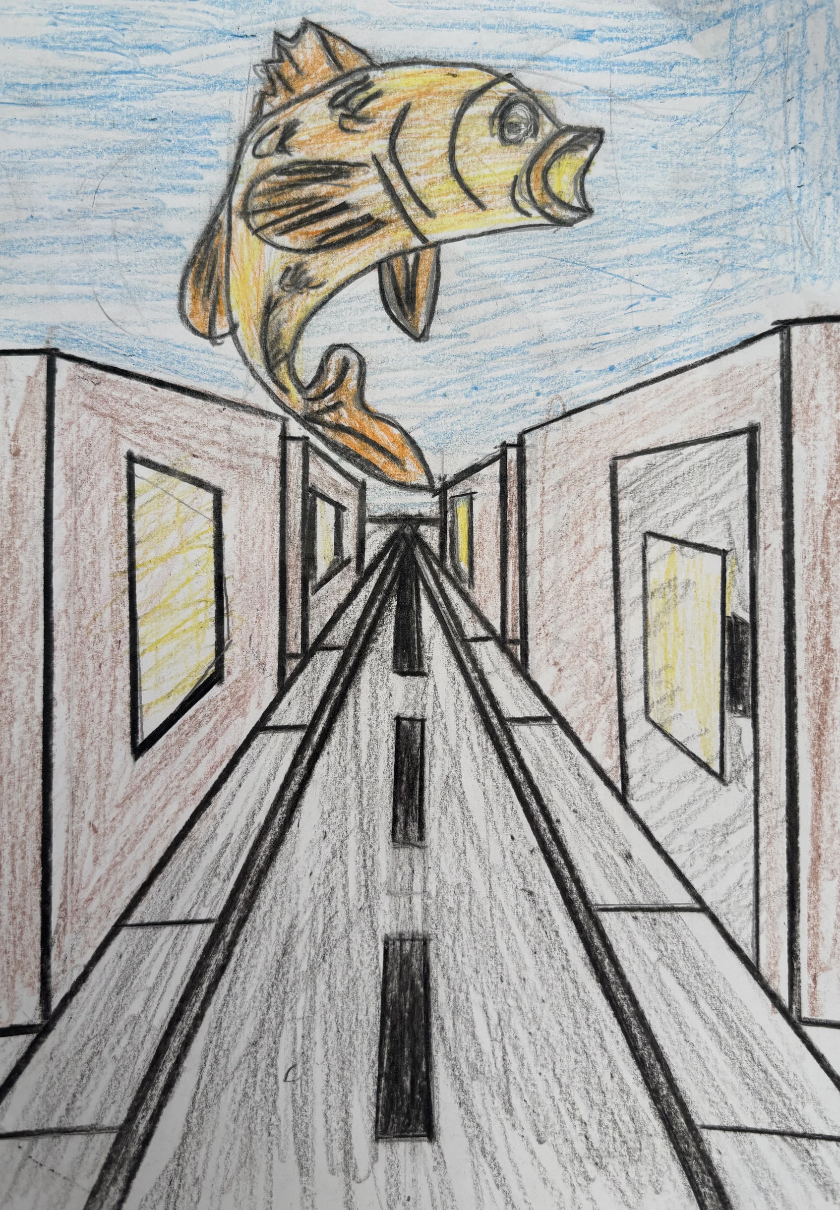 Coloured pencil and biro, 30cm x 21cm