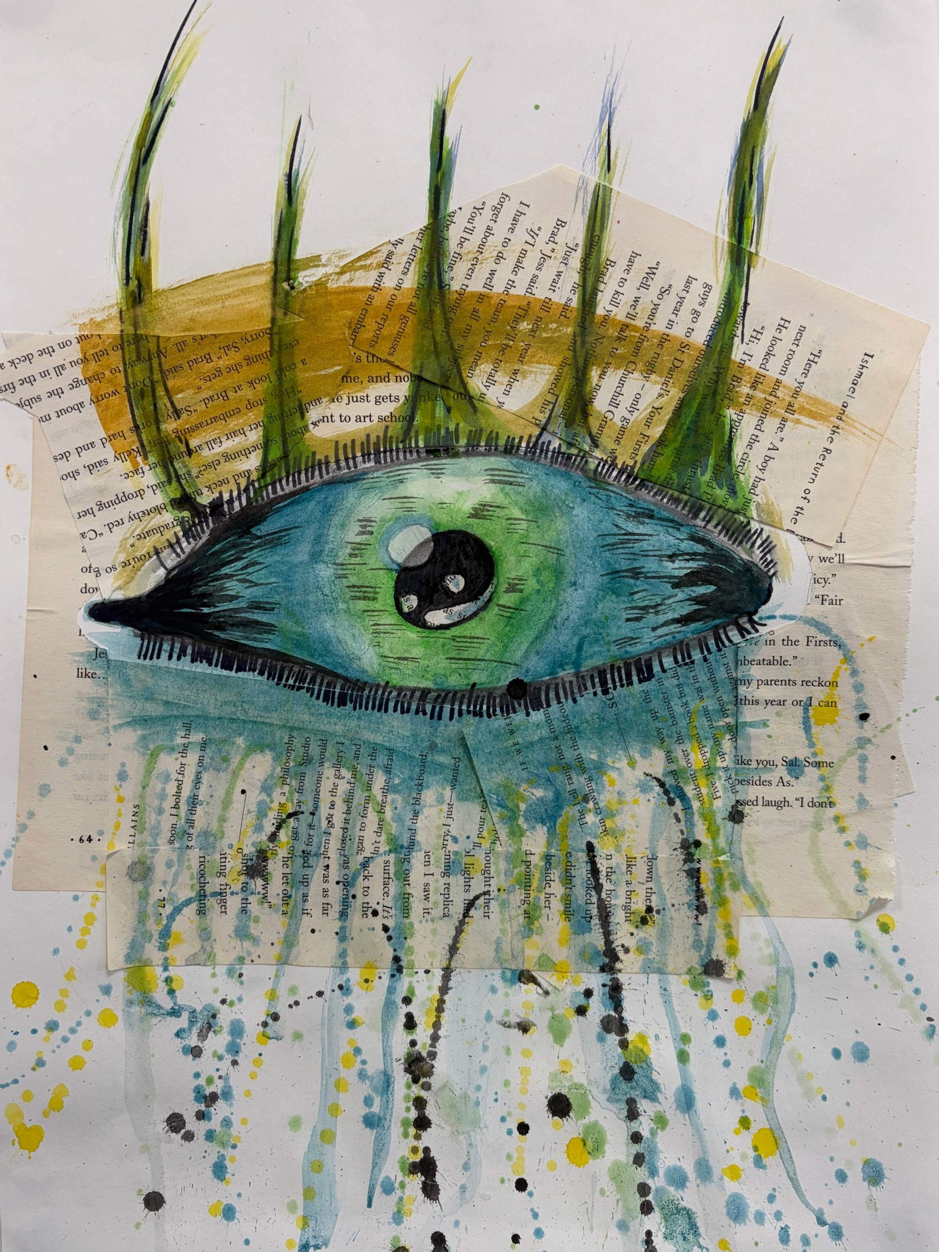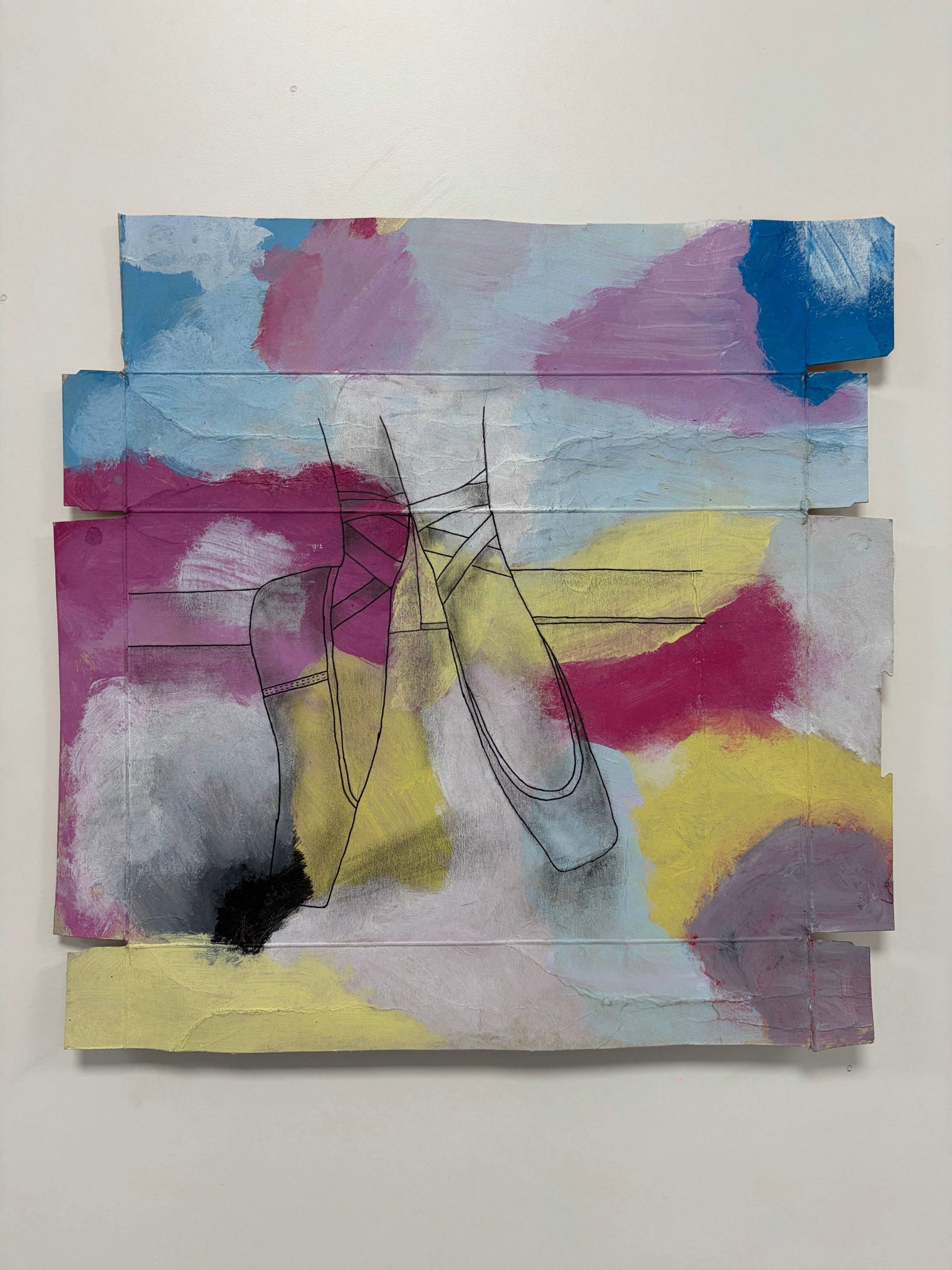 Mixed Media -Acrylic paint, pen and pencil on recycled packaging, 30cm x 34cm