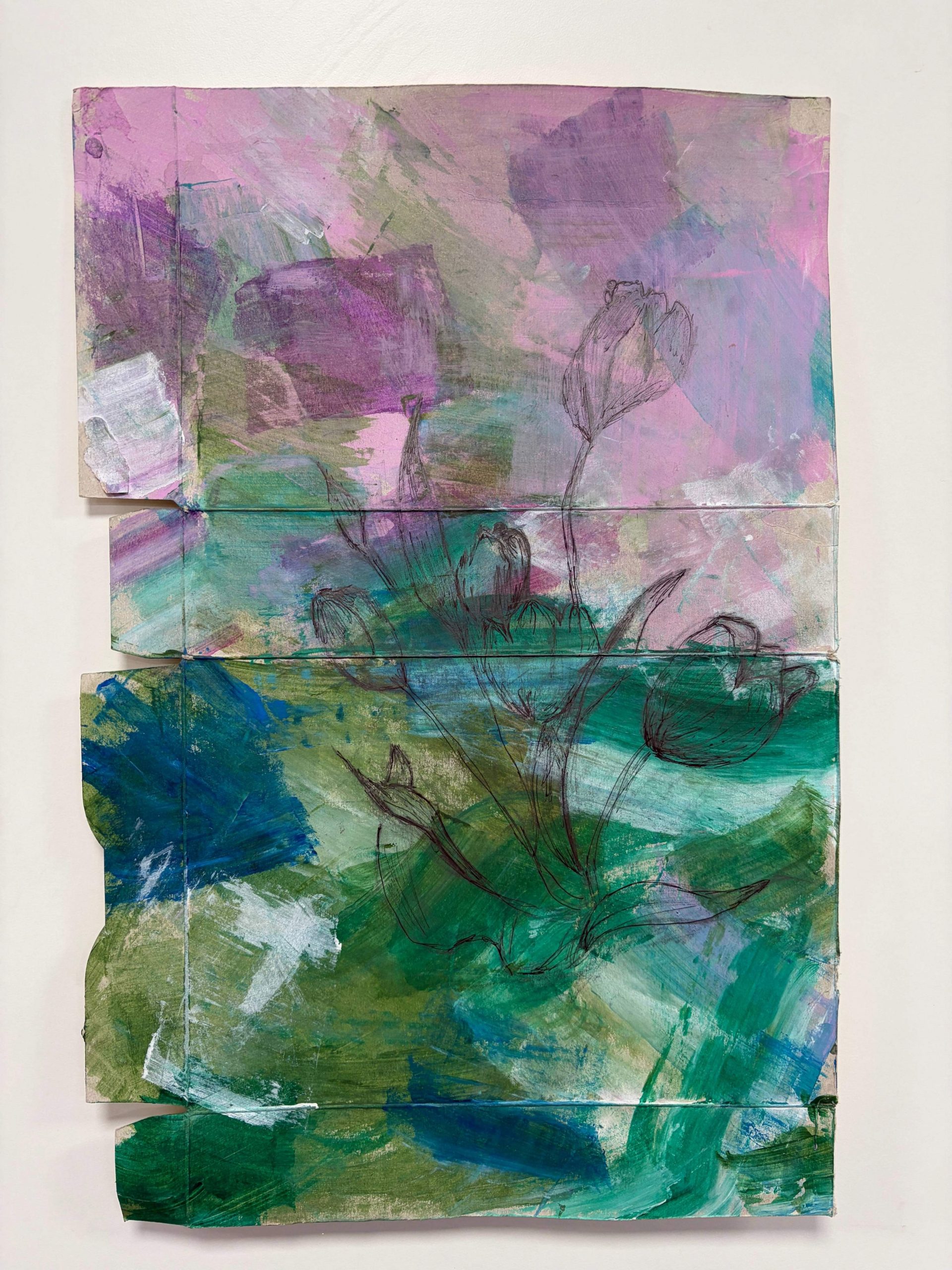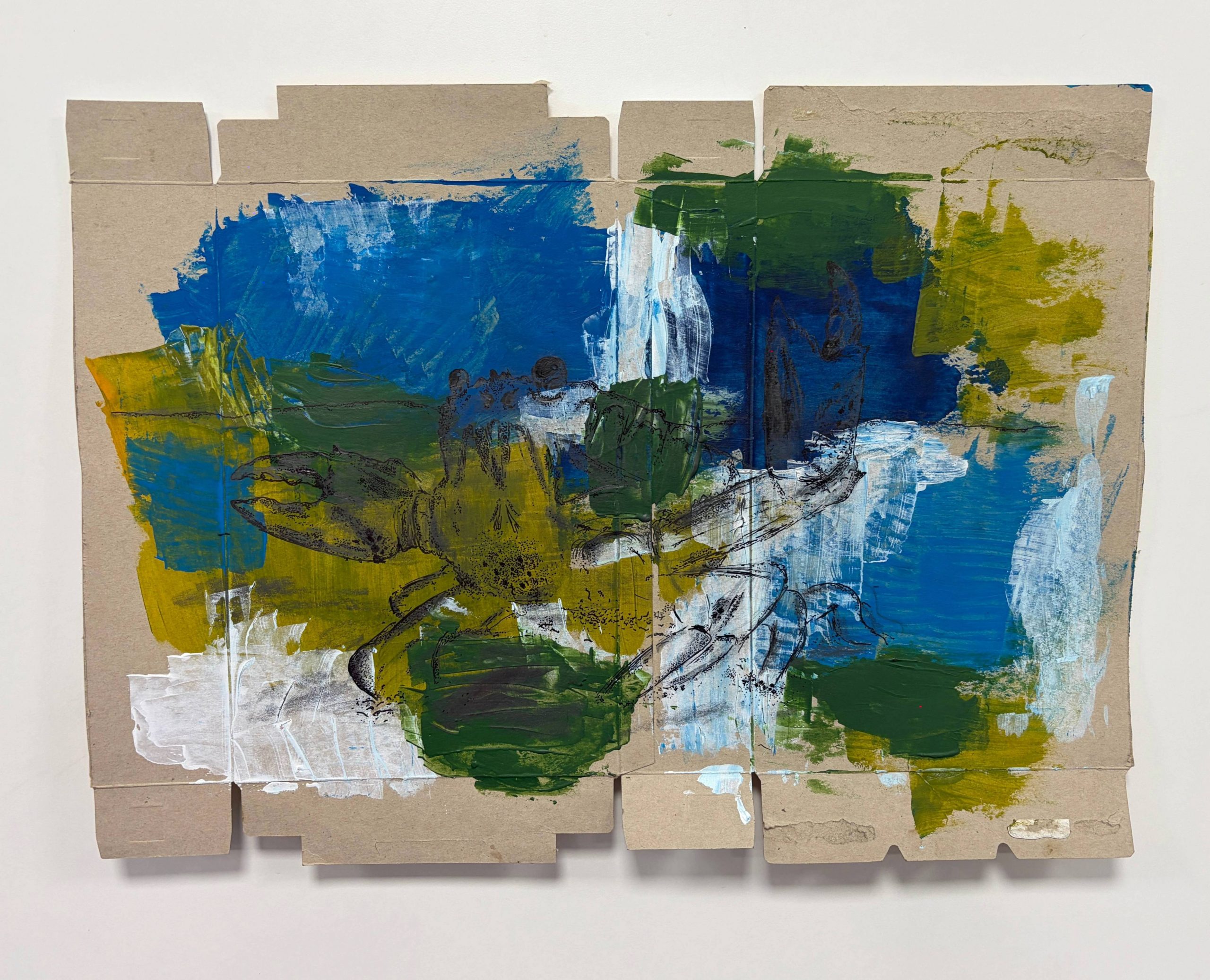 Mixed Media -Acrylic paint, pen and pencil on recycled packaging, 34cm x 51cm