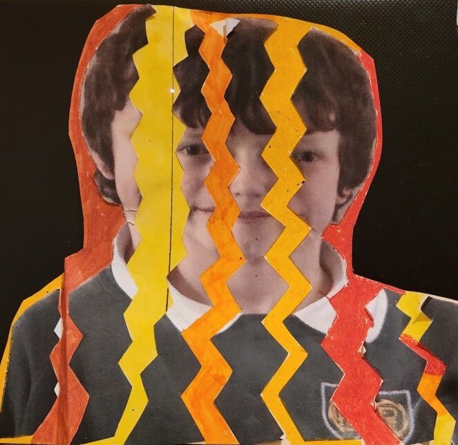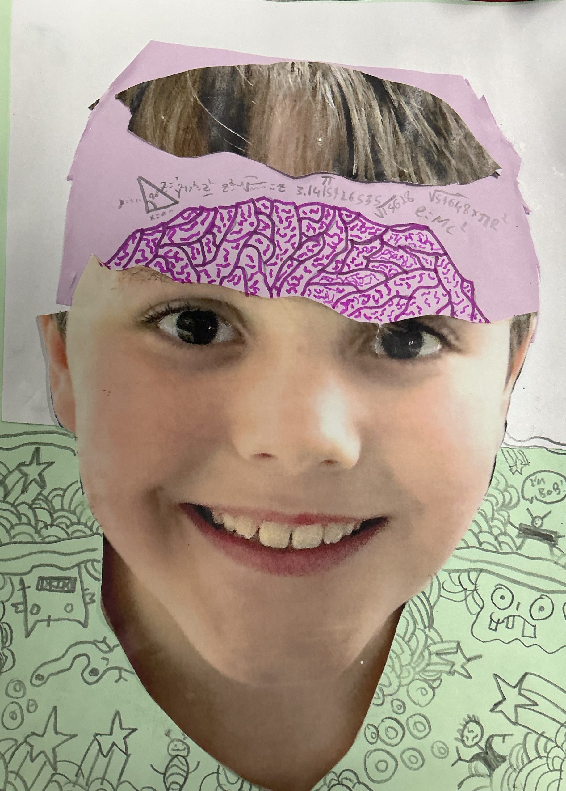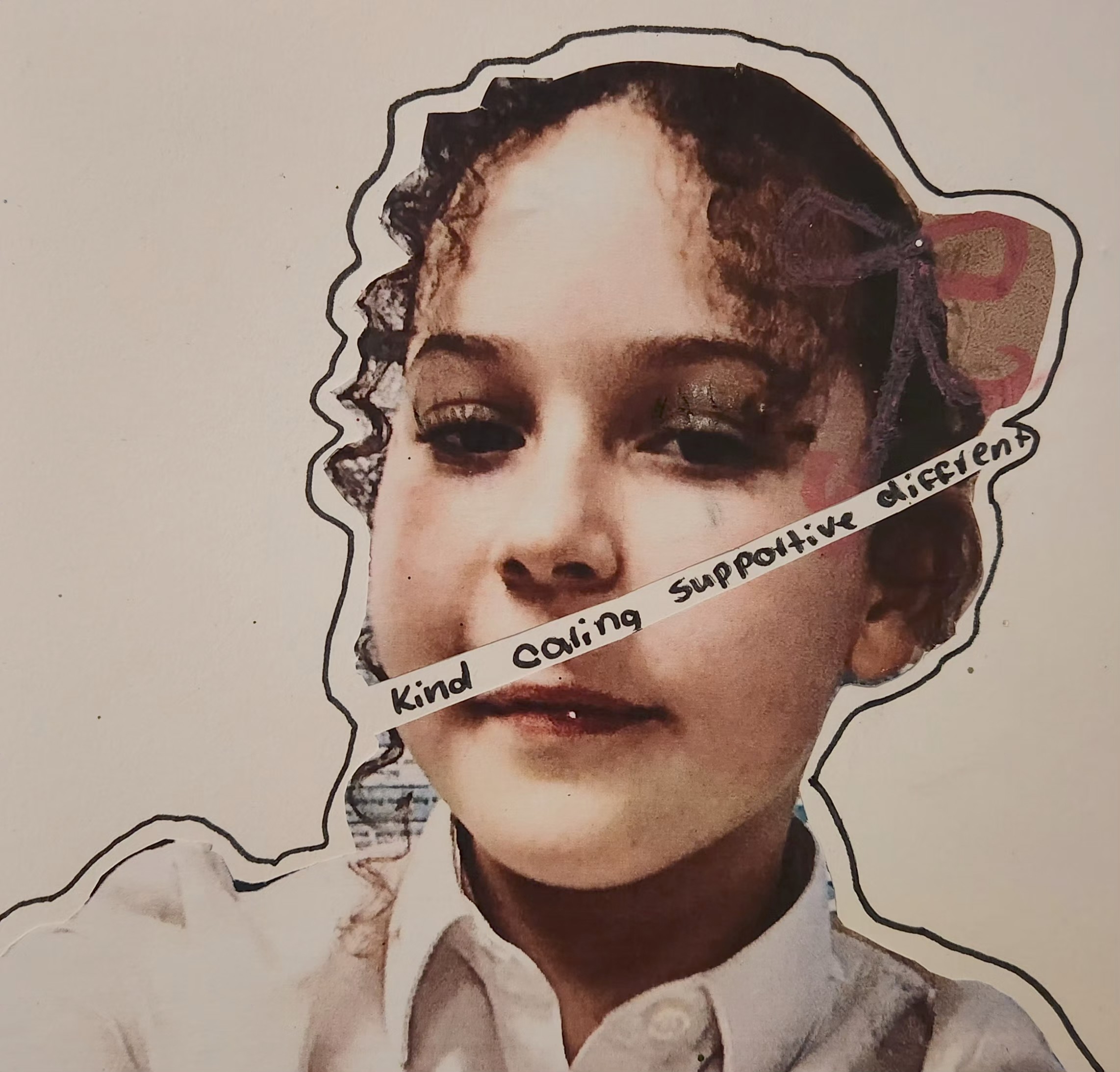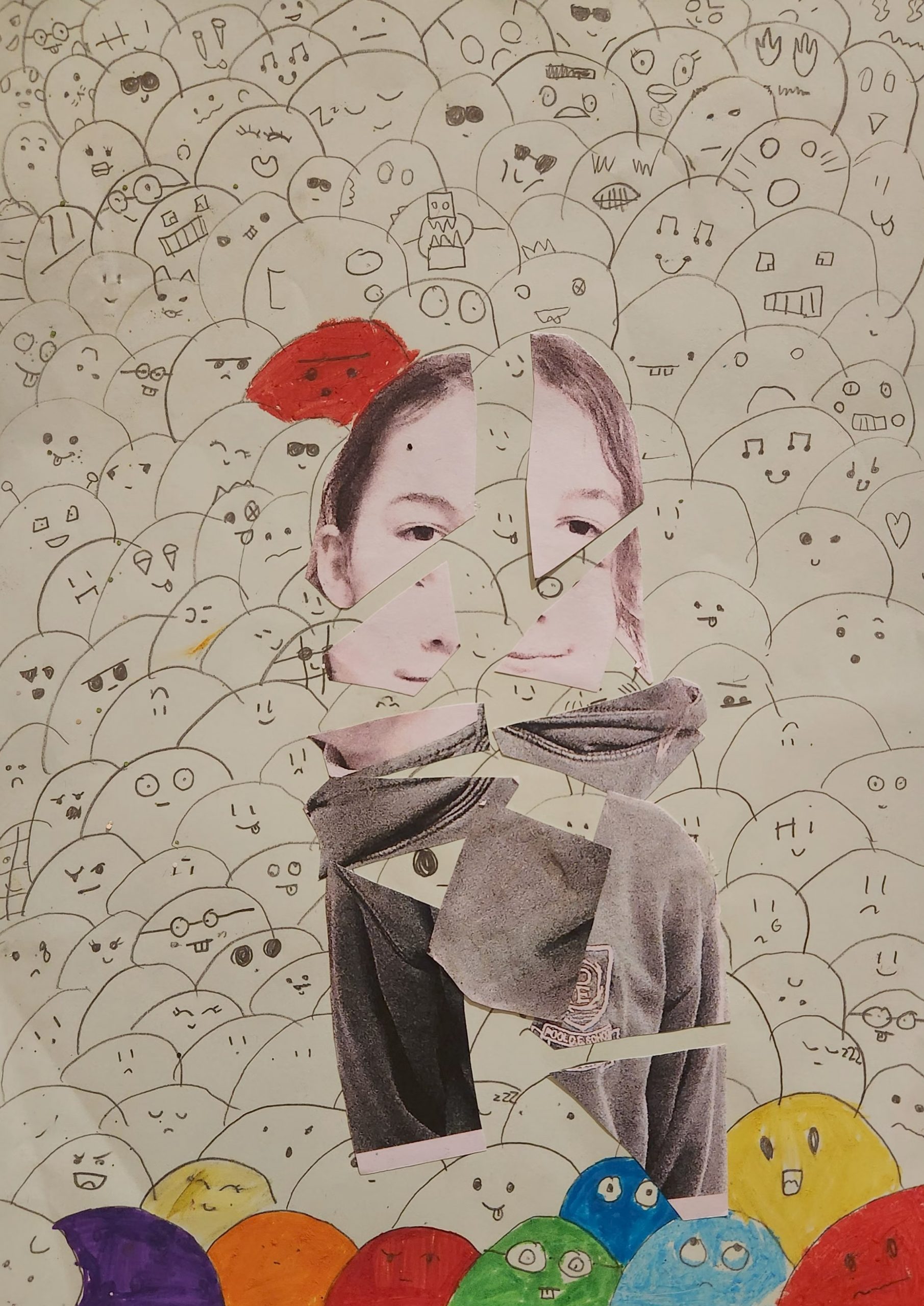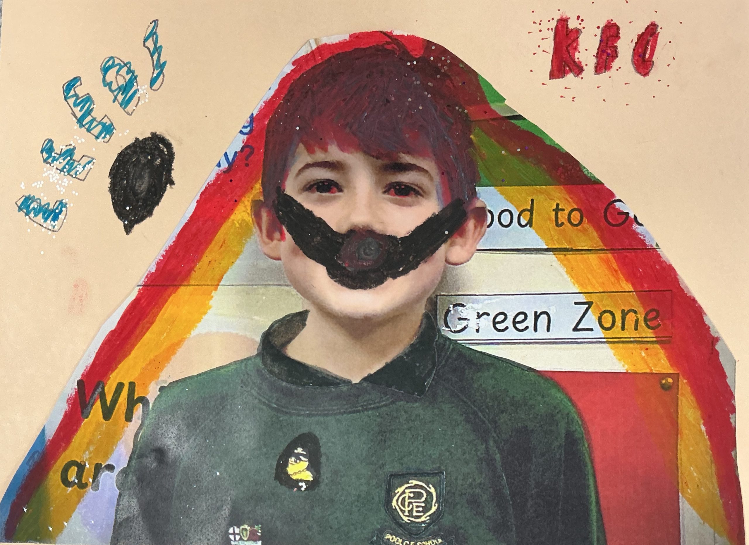 Photo, oil pastel, pen, glitter, 21cm x 29cm